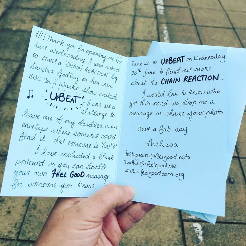 Chain Reaction is a weekly feature on the Upbeat show that challenges the people of Coventry to find creative ways to show some kindness, I was kindly asked to kick off their first chain reaction on last week’s show.
